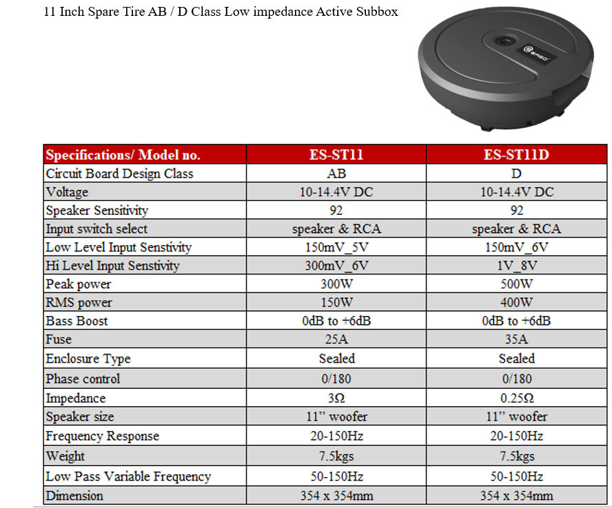 11 Inch Spare Tire Active Subbox (Class AB/D)